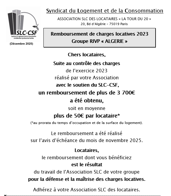 Remboursement de charges Groupe RIVP Algérie 2025
