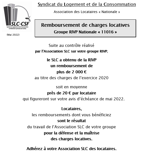 Remboursement de charges Groupe RIVP Nationale 2022