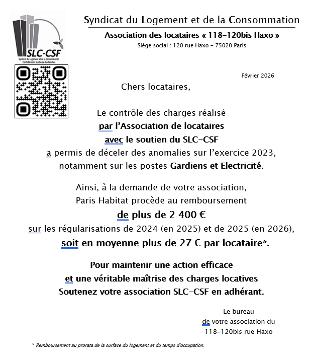 Remboursement de charges Groupe Paris Habitat 118-120bis Haxo 2026