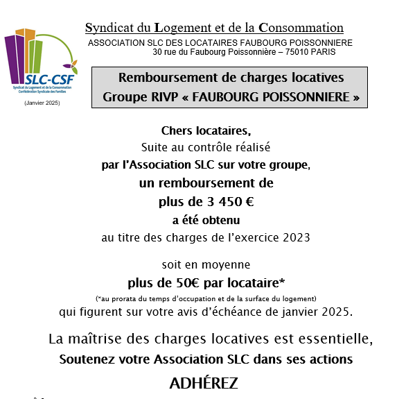 Remboursement de charges Groupe RIVP Lesseps 2025